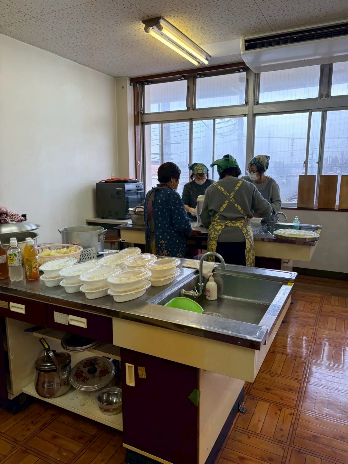 大人で160人分作りましたが、雨でいつもより子供たちが少なく、持ち帰りの量が大事件!!