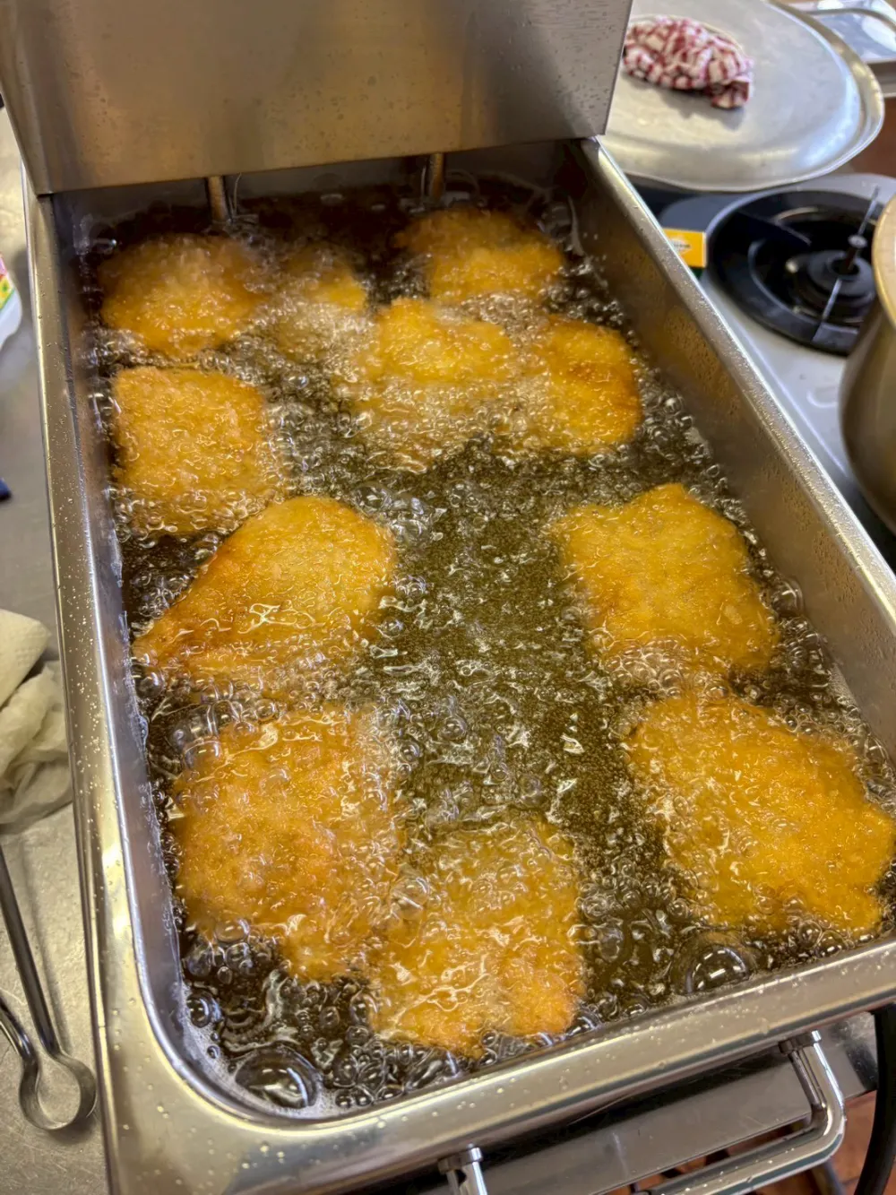 感想今回は冬休みなので、柏市地区社協とコラボでイベントに参加した子供たちの分の作ったので120食になりました。また柏市のセキグチ肉店さんからフライヤーをご提供いただき、カツを一度にたくさん揚げることができました。
