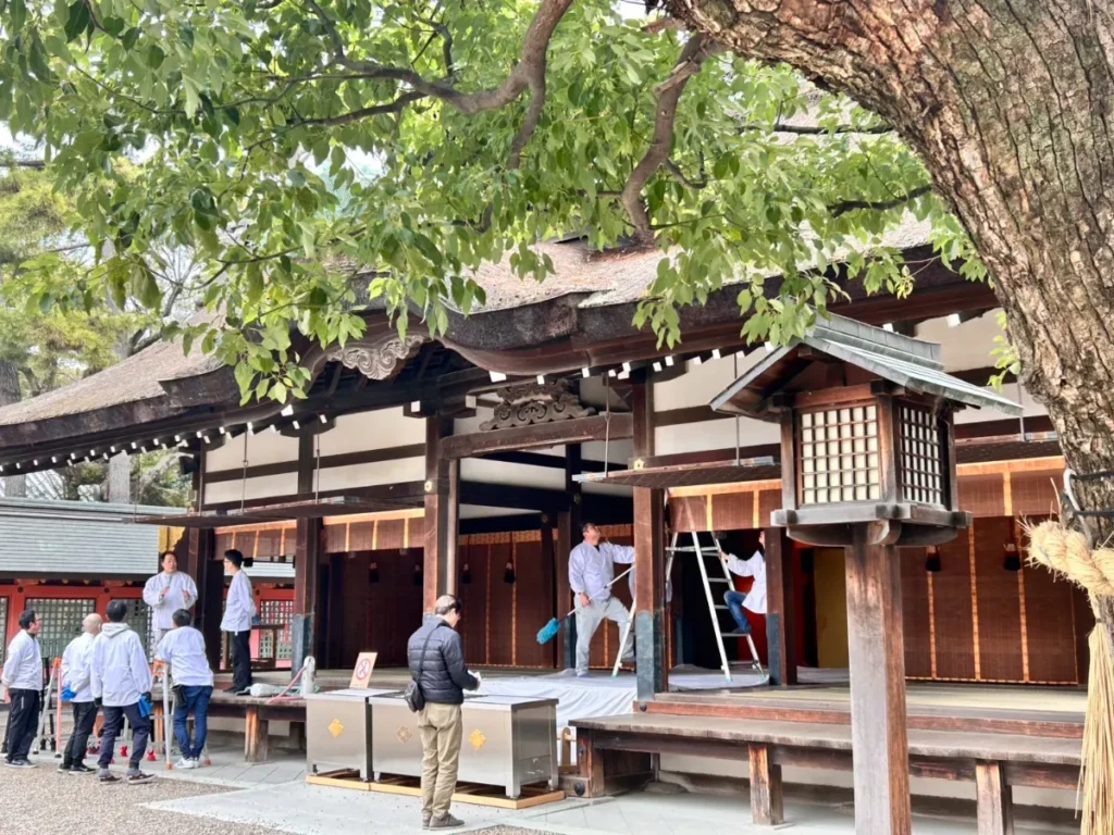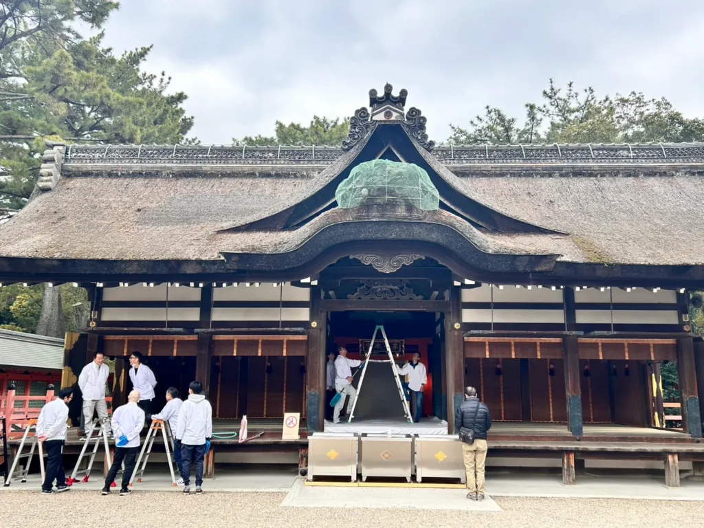 作業箇所は、国宝 本殿4殿 (住吉造と称し、神社建築史上最古の様式の一つ)