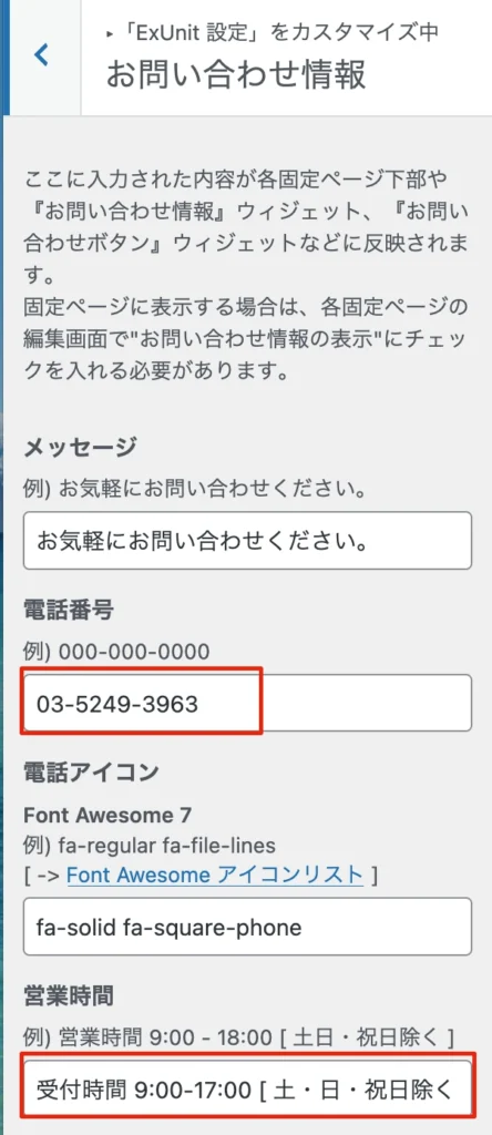 5:お問い合わせ情報内で設定(電話番号・営業時間)